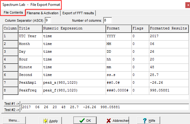 - Configure the processed file output parameters of Spectrum. To do this, go to File --> Export FFT and make your settings match those in Figure 5.