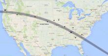 Figure: Map of clear channel AM broadcast stations in or near the August 21, 2017 eclipse totality. Eclipse map by Xavier Jubier.